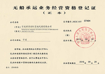Ningbo Sunshine is Approved as a Licensed NVOCC...
